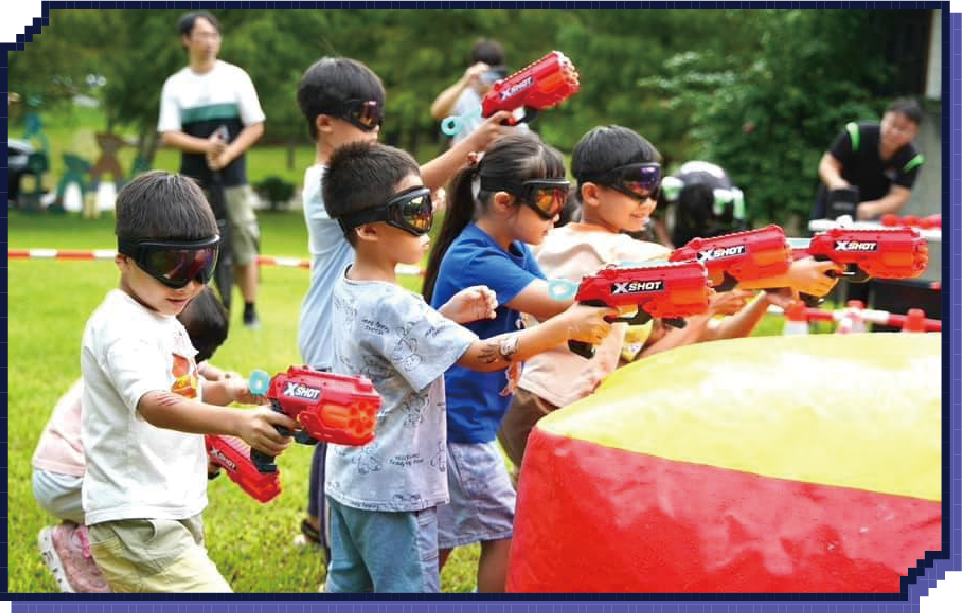 在這場激烈的Nerf保衛戰中,小朋友將成為奇幻世界的守護者,拿起你的保衛射擊器,捍衛陣地或突破防線,與隊友並肩作戰,展開一場刺激的對決!