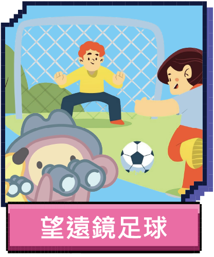每隊2人合作,一人戴上望遠鏡一人用聲音引導足球正確方位,將球踢進球門即挑戰成功!憑聽覺,精準出擊~