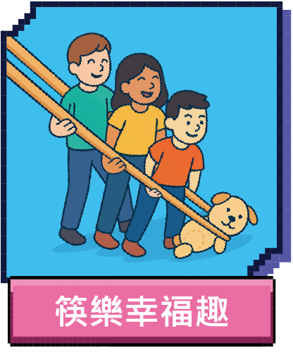 拿起巨型筷子,和家人並肩作戰!精準控制力道與方向,合力將指定物品夾進目標區,就能成功過關!